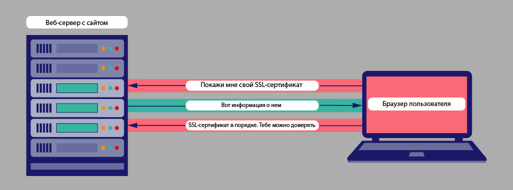 Это работает так: браузер проверяет SSL-сертификат сайта, на который заходит пользователь.
