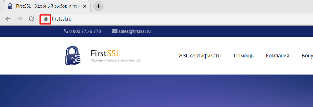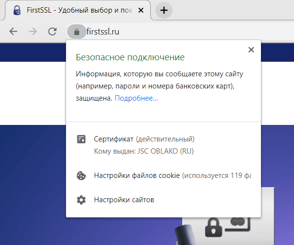 Если всё в порядке, сайт помечается браузером как безопасный. В адресной строке виден замочек.