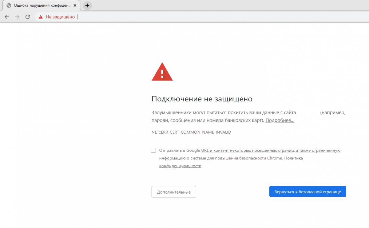 Если сертификата нет, пользователь увидит пометку «не защищено» и может уйти с сайта.