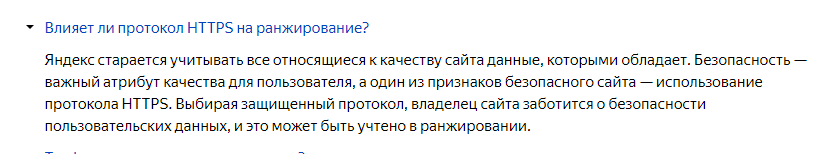 Официальная позиция Яндекса о влиянии SSL-сертификата на ранжирование сайта в поиске. Рекомендация специалиста Google всегда использовать защищенный протокол HTTPS: «Вы всегда должны защищать ваш сайт с помощью HTTPS, даже не обрабатываете конфиденциальную информацию. Это не только обеспечивает сохранность данных на сайтах и личную информацию пользователей, но и необходимо для работы многих новых функций браузера, особенно для прогрессивных веб-приложений»