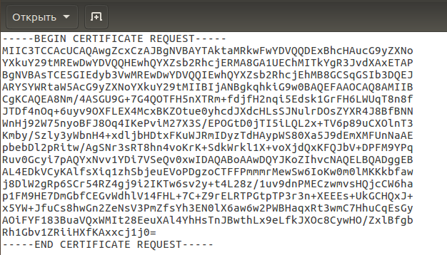 Запрос на сертификат будет сохранен в файле domain-name.csr в виде закодированного текста.